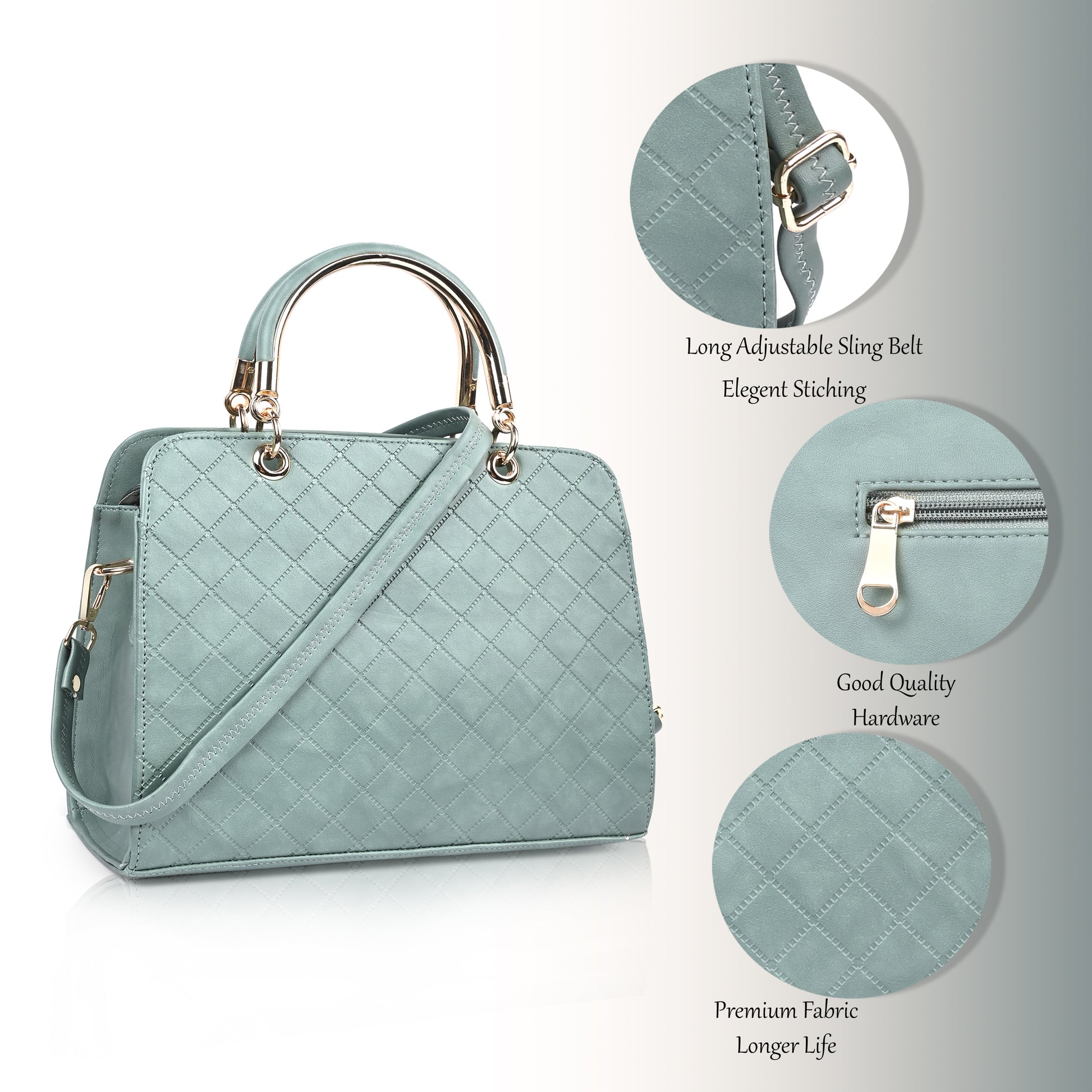 This light green handbag features a striking diagonal pattern, giving it a unique and modern aesthetic. Crafted from sustainable faux leather, it combines an eye-catching design with an ethical foundation. The bag's interior is thoughtfully organised, providing practical storage for your essentials, while its durable and lightweight build ensures comfortable everyday use. This piece is perfect for adding a subtle yet sophisticated detail to any outfit, making it a standout accessory for any occasion.