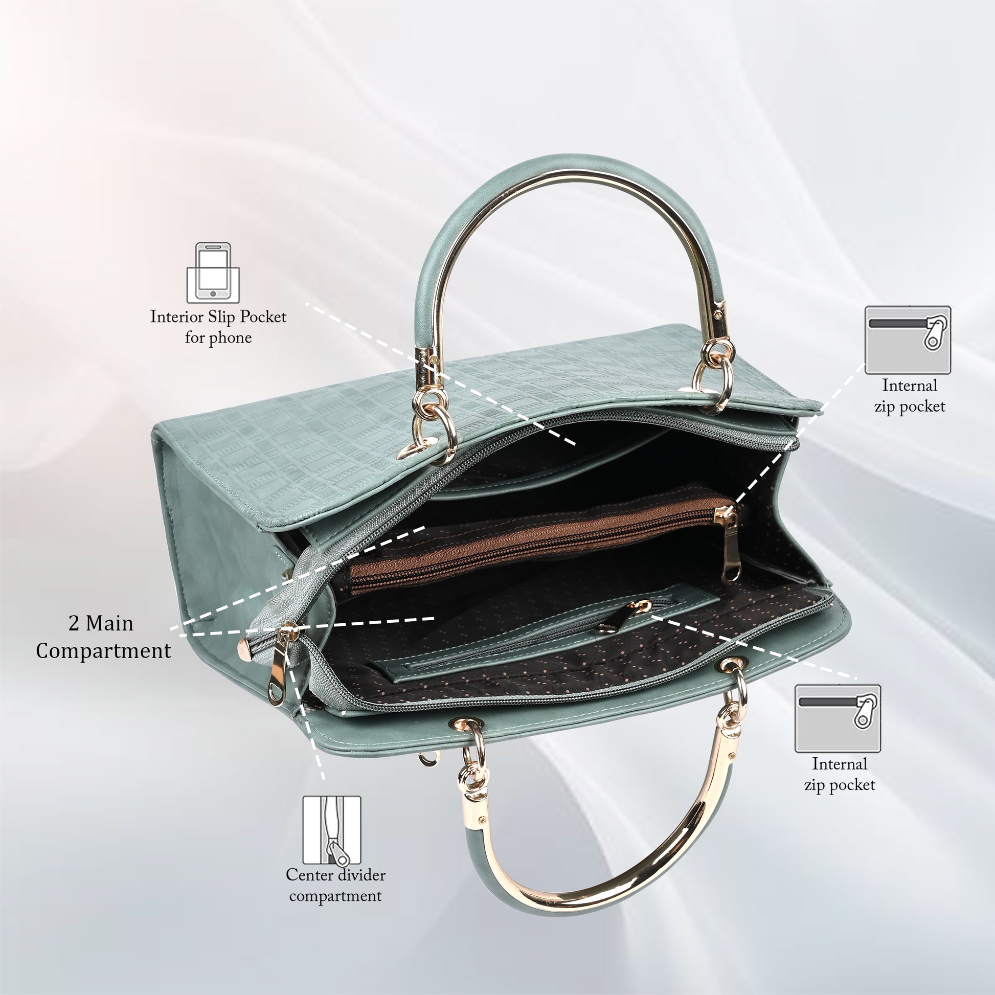 This light green handbag, with its serene and fresh colour, is a unique take on a classic accessory. Crafted from sustainable faux leather, it's a stylish and ethical choice. The bag features a minimalist design that is both elegant and highly functional, with a structured interior and a secure closure to keep your essentials organised. Its lightweight feel and durable construction make it perfect for daily use, adding a gentle pop of colour to any outfit while keeping you organised on the go.